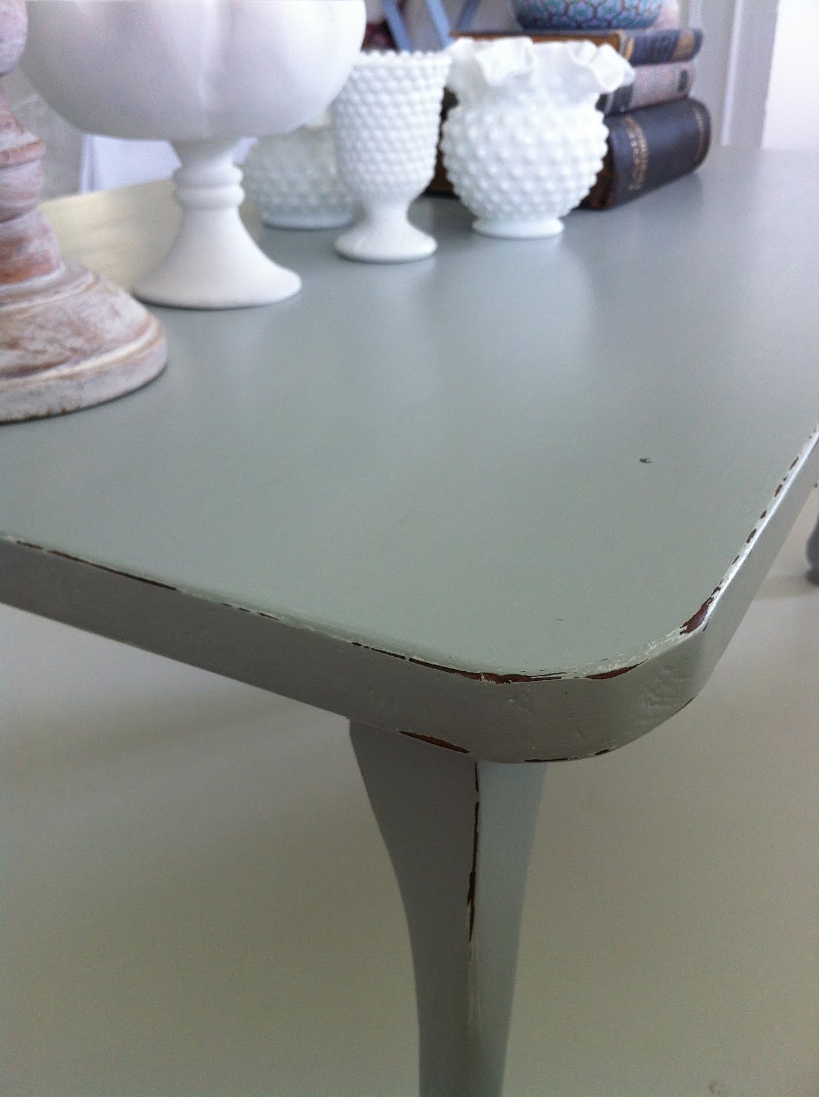 Now that is a makeover! Well done. I love you little collection of milk glass. Very pretty!